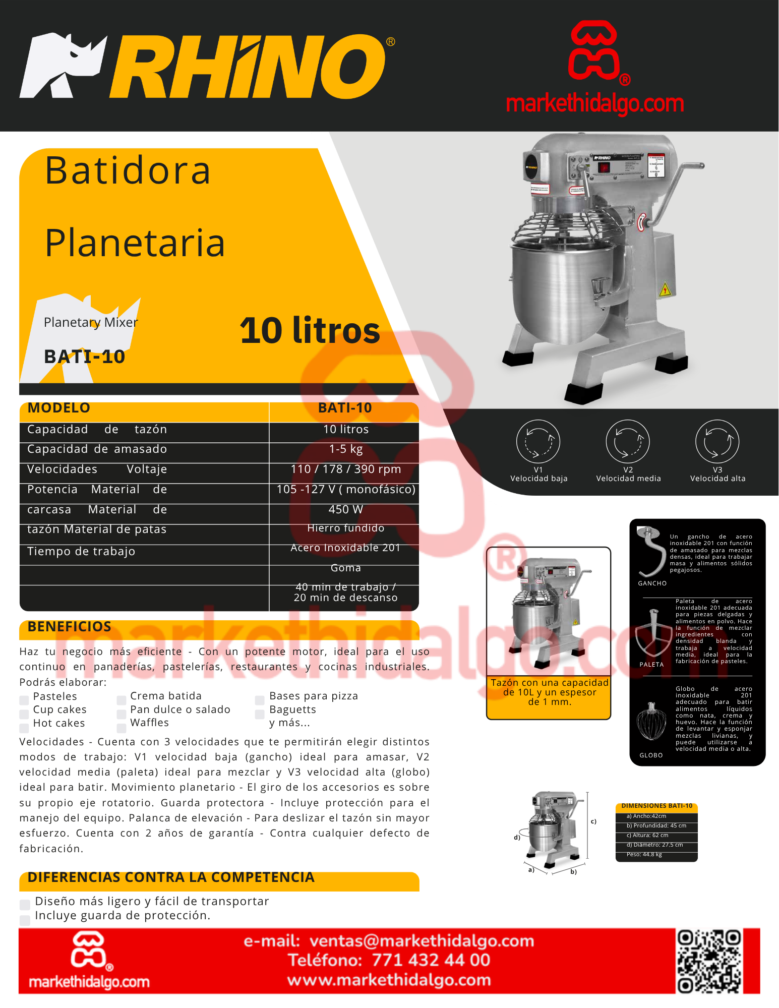 | Capacidad del tazón | 10 litros |