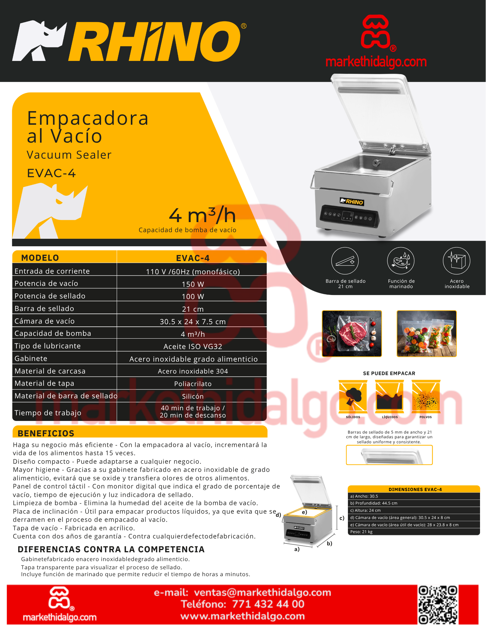 | Cámara de vacío | 24 x 30.5 x 7 cm |