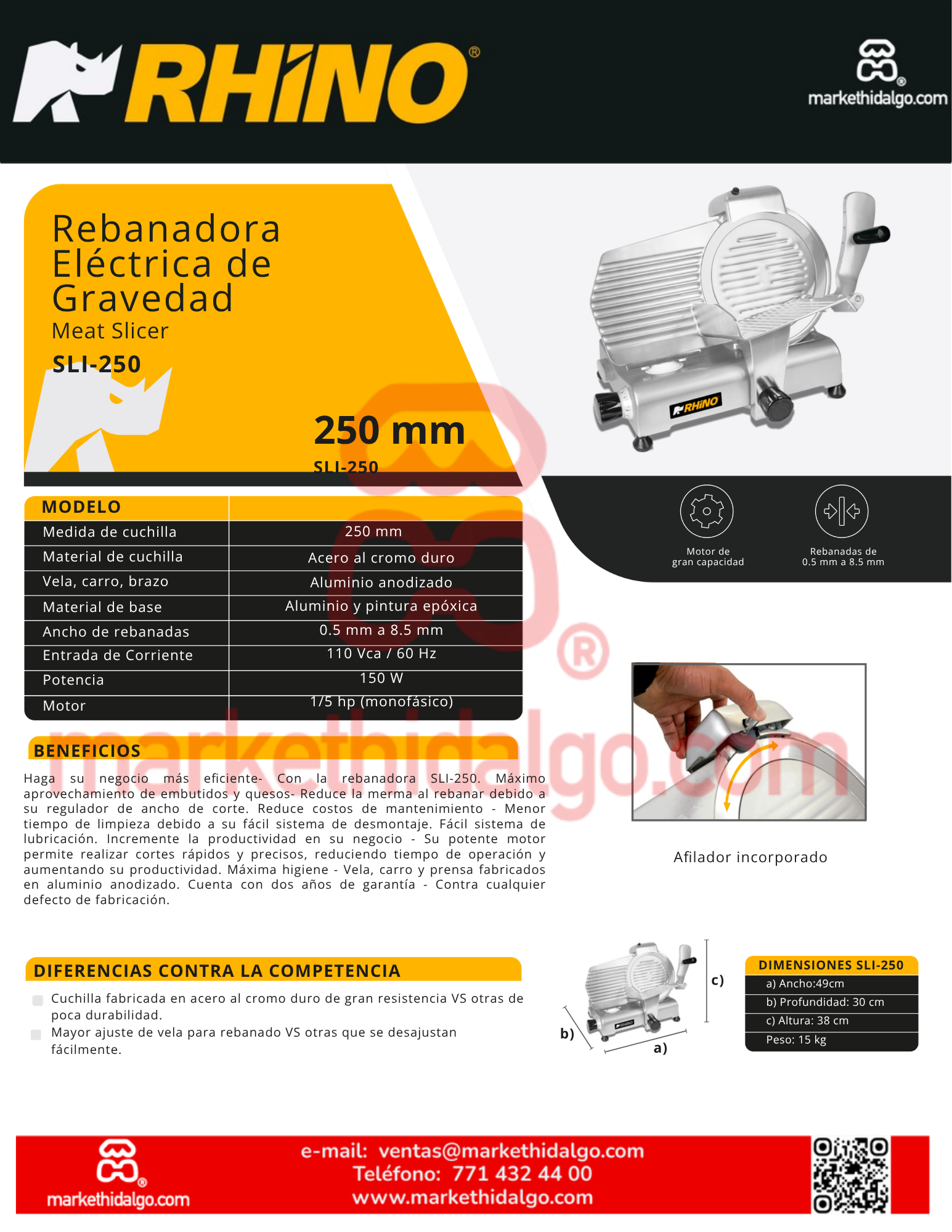 | Ancho de rebanadas | Ajustable de 0.5 mm a 8.5 mm |