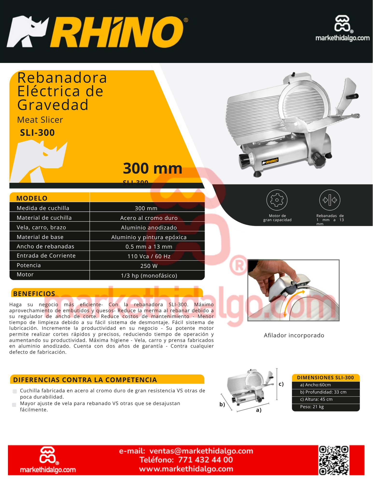 | Ancho de rebanadas | Ajustable de 0.5 mm a 13 mm |
